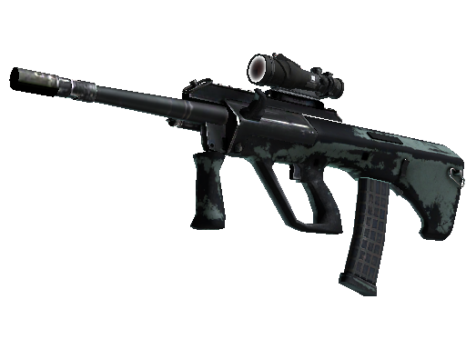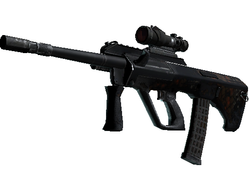Мощная и точная винтовка с оптическим прицелом AUG компенсирует свою долгую перезарядку низким разбросом пуль и высокой скорострельностью. На корпус нанесён узор в виде карты с элементами интерфейса разведывательного дрона.